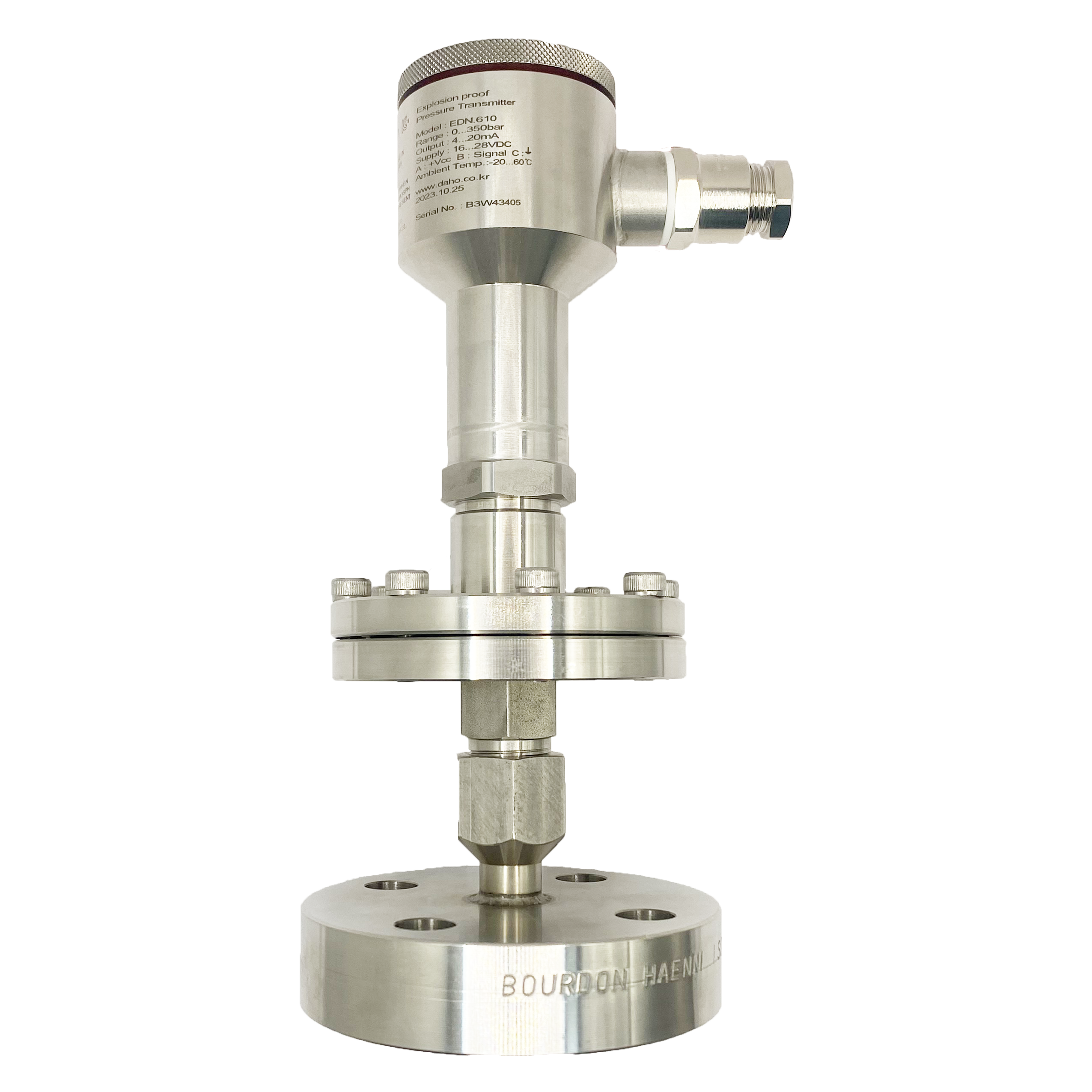 pressure transistor and the wet parts of the process flange are made of